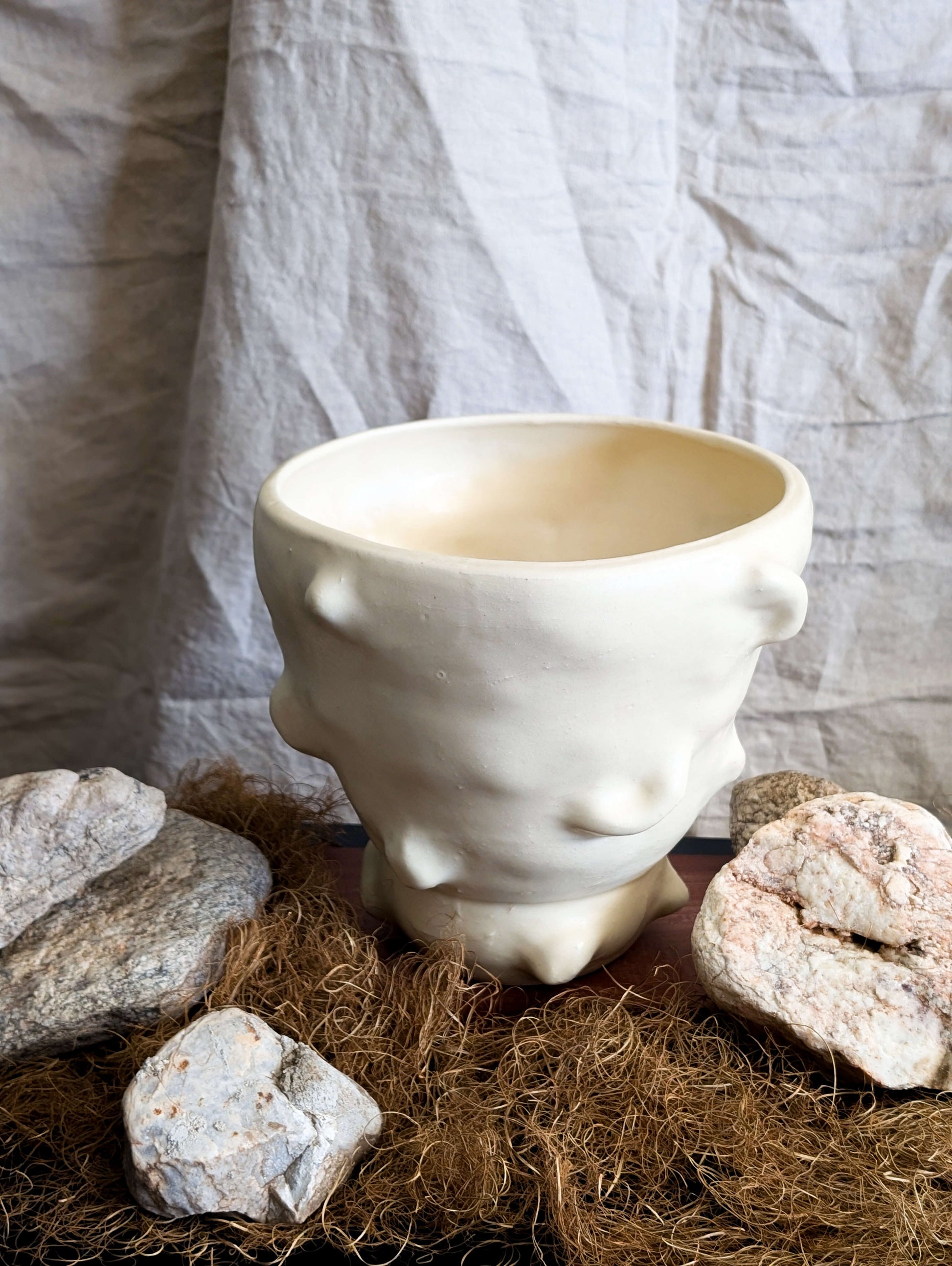 Sheep Vase, a part of the Homecoming Collection, reflects a conversation I had while on a hike in my great-grandfather's homeland in Ireland. This vase was designed to bring home that indescribable feeling of being in nature and forgetting where the land ends and you begin.